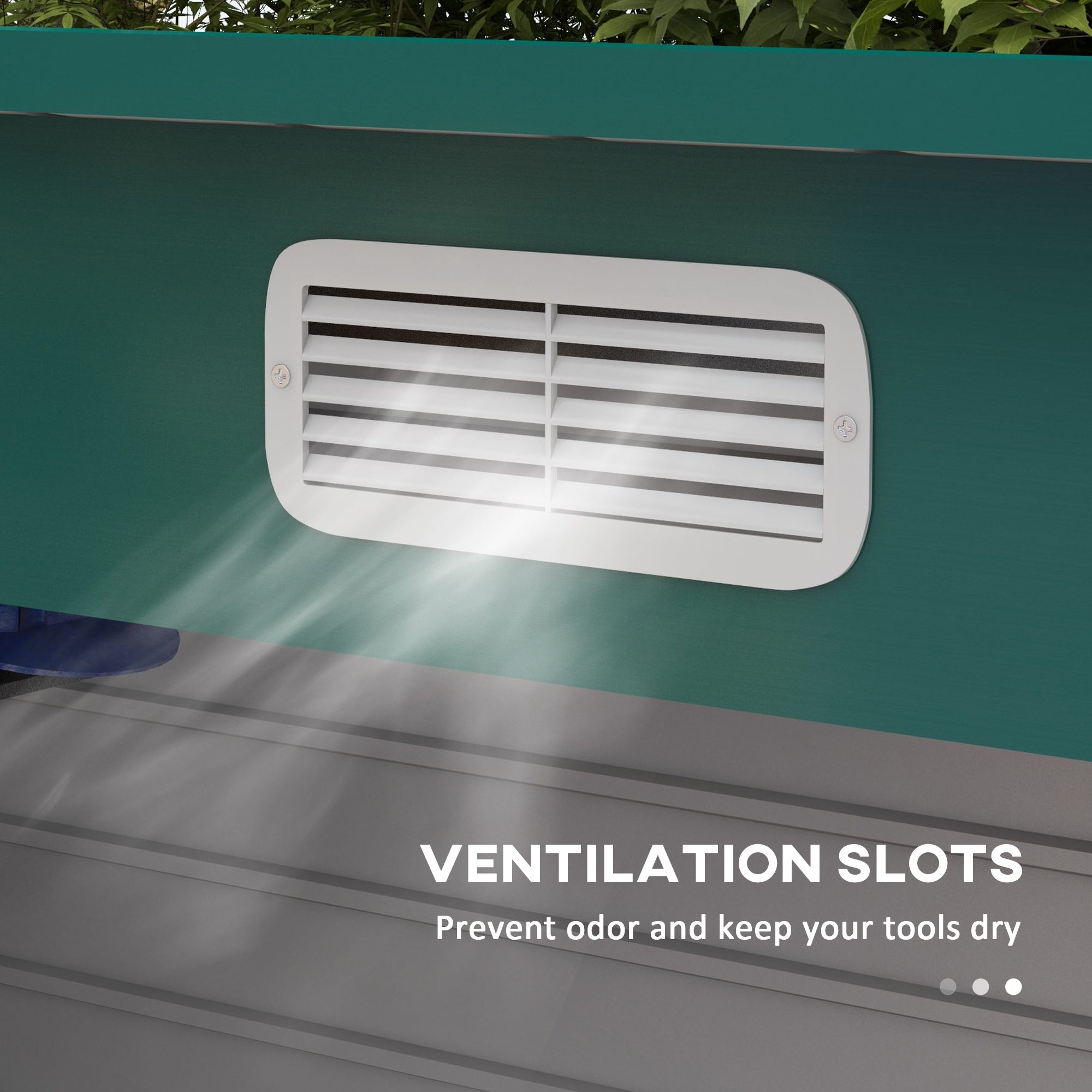 - – Two ventilation slots: Brings air inside garden storage shed, helps prevent odour and keeps tools and equipment dry.
