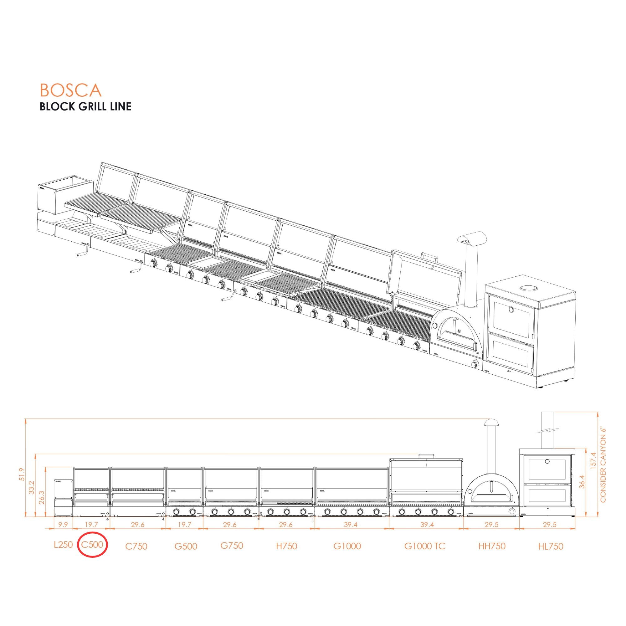 Bosca Block 500 – 20 Inch Built In Wood Fired Grill