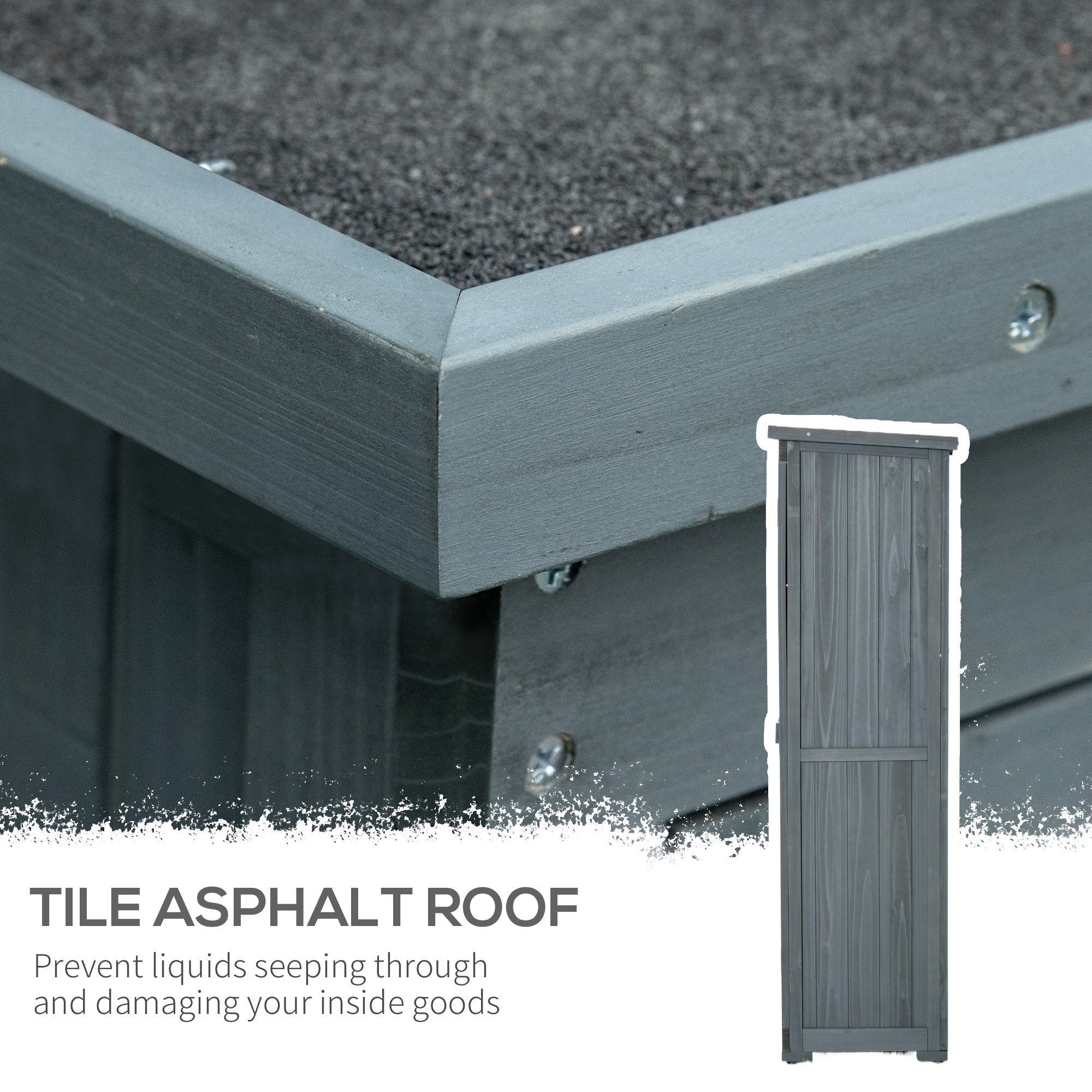 Small Wooden Tool Storage Cabinet w/ 3 Shelves, Asphalt Roof & Shutter Doors, 87x47x160cm, Grey